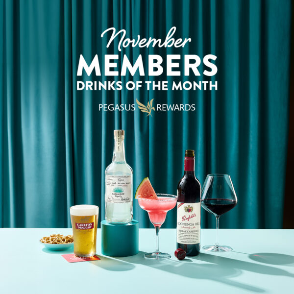 Being a Pegasus Rewards member has its perks. Enjoy our exclusive prices and point-redemption offers on some seriously good sips. Check out this month’s members only specials:
