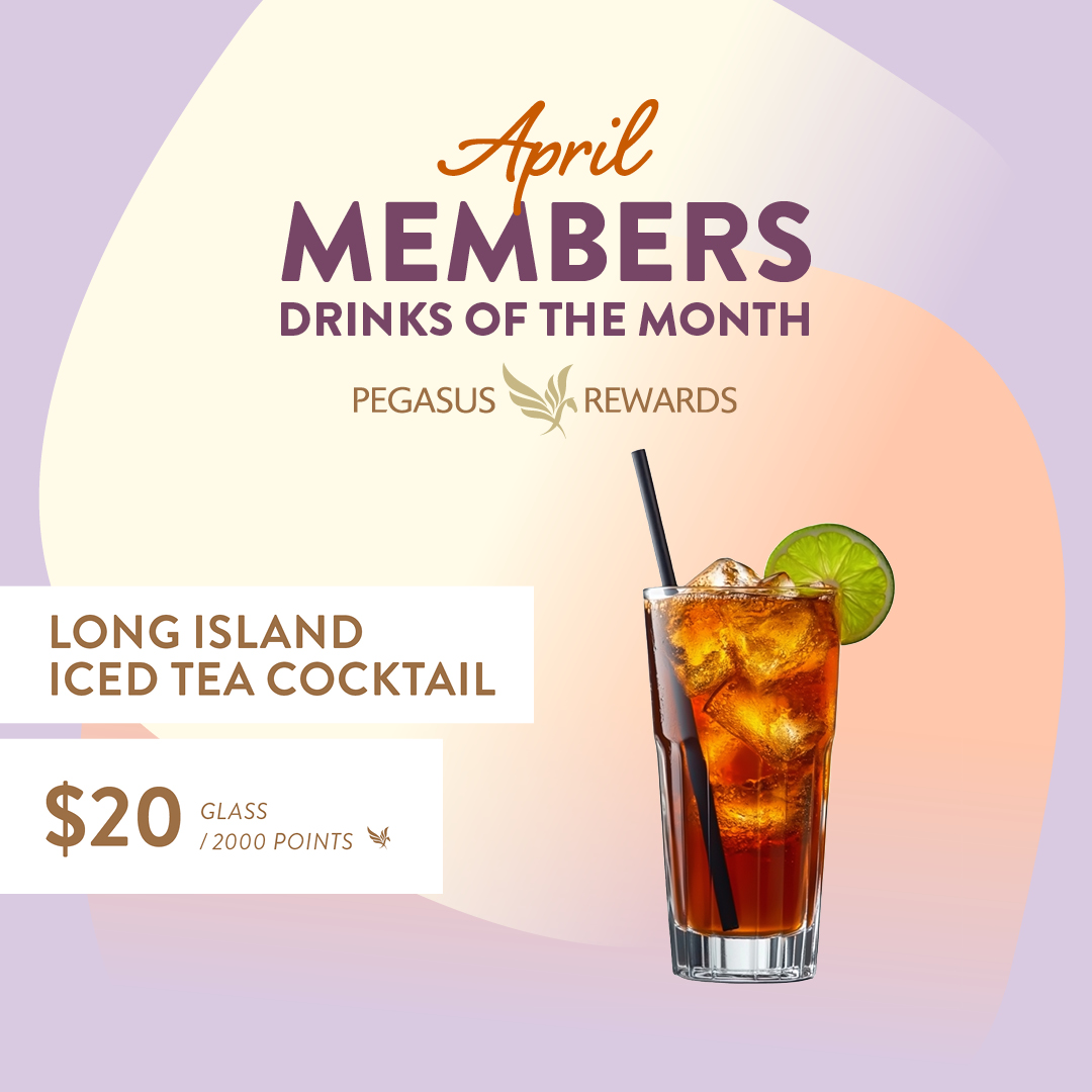 • Long Island Iced Tea -classic cocktail $20/2000pts